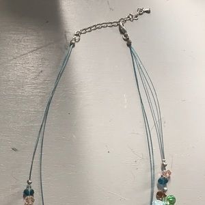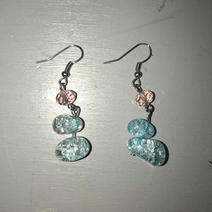 Handmade with beautiful stones. Has matching earring set. The Necklace adjusts to fit several different lengths. A great accent piece to any outfit.