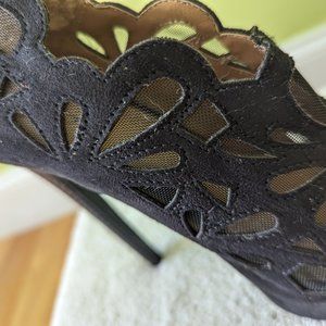 Gorgeous Suede Net Cut Out High Heels BEBE sz 6 Black