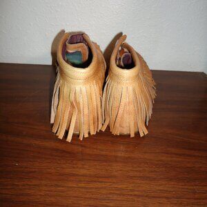 Gorgeous Sz 6 L & B Fringed Moccasins Slip On leather Aztec Boots Shoes