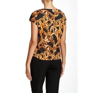 Gorgeous TRINA TURK "Carola Blouse" Chain Print Cap Sleeve Crew Neck Blouse P