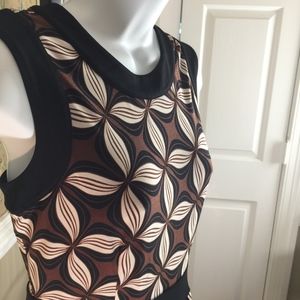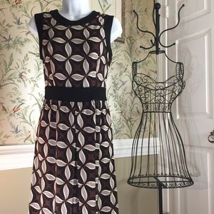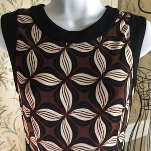 Gorgeous Talbots sleeveless dress, size 6P, brown, cream, black with black trim and waist detail, back zipper with hook and fabric loop closure, has stretch, 96% polyester, 4% spandex, machine wash. In "like new" condition. This dress works well for the office or the weekend!