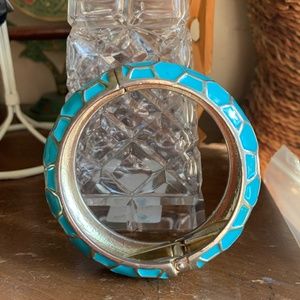Very pretty teal enameled clamper bracelet with a honeycomb design.