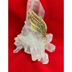 Gorgeous Textured Blades pin w/Fuchsia Crystals in Antique Gold plate