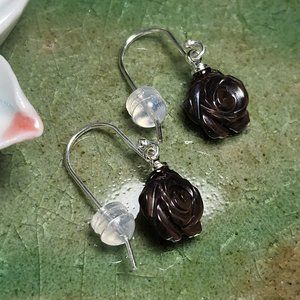 Gorgeous Timeless Natural Chocolate Brown Rose Carved Shell Earings