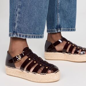 Gorgeous Tory Burch Fisherman Platform Espadrille Dark Cherry Red Patent Leather