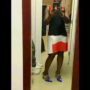 Gorgeous Trouve Orange, black, grey & white sleeveless dress with back zipper detail. Small size. Like new. Can be worn to a special occasion.