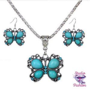 Gorgeous Turquoise Butterfly Necklace and Earring Set