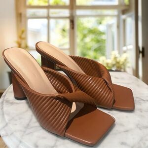 Gorgeous Twist Mule Slide Ribbed Heel Slip-on Square Toe Size 37
