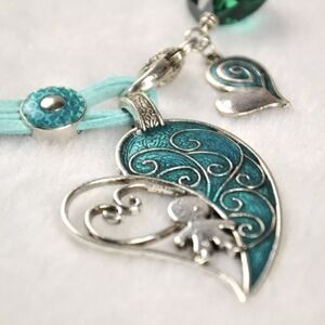 Check out this gorgeous unique turquoise suede cord and glass bead heart necklace! I’m in love! D14