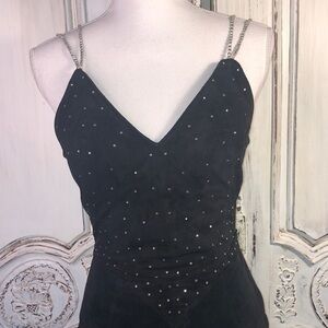 Gorgeous VINTAGE Black Suede and Rhinestones Special Occassion Cocktail Dress