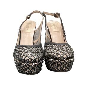 Gorgeous Valentino Black Satin With Leather And Crystals S.9 Platform Stilettos