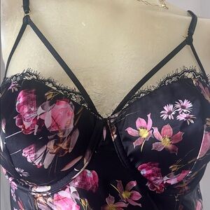 Gorgeous Victoria’s Secret Floral Black Bustier Top NWOT