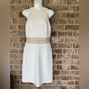 Gorgeous Vince Camuto Halter Cream and Gold Sheath Dress Size 6