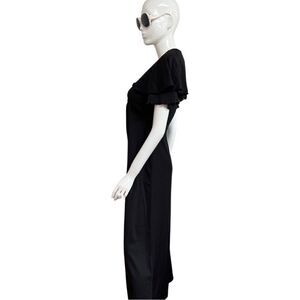 Gorgeous Vintage 1970s Tiered Flutter Sleeve Black V-Neck Evening Gown