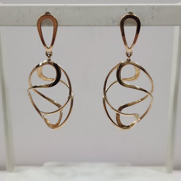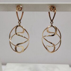 Gorgeous Vintage 90s 14K Solid Gold Freeform 3D Open Twist Dangle Drop Earrings