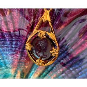 Gorgeous Vintage Avon Amethyst Purple Intaglio Glass Cameo pendant