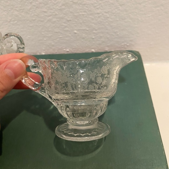 Gorgeous Etched Blown Glass Cambridge Rose Clear Open Creamer and Sugar Set