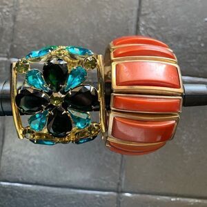 Gorgeous Vintage Emerald Green and Romance Rust Brown SET of 2 Stretch Bracelets *REDUCED PRICE