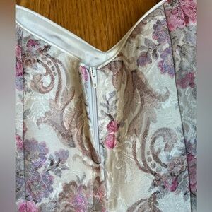 Gorgeous Vintage Floral Cream Tapestry Rayon Blend Dress 80s 90s Size 12. Sweetheart neckline. Midnight Glo brand.