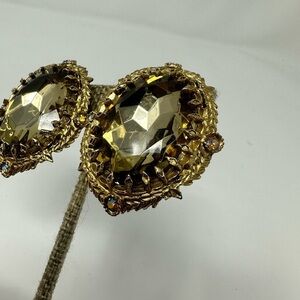 Gorgeous Vintage Gold And Rhinestone Clip on earrings