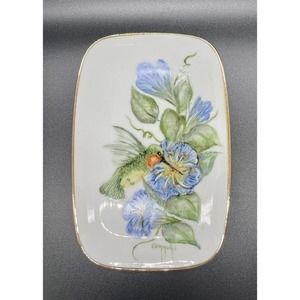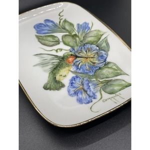 Gorgeous Vintage Hand Painted Hummingbird Trinket Dish-artist signed
