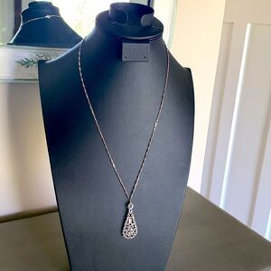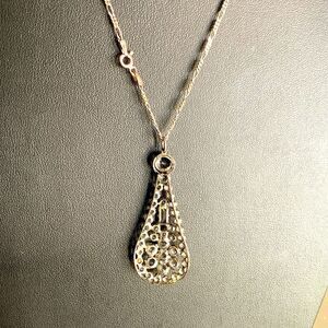 Gorgeous Vintage Oval Shining Rhinestone pendant Necklace, in Silver, Stamped