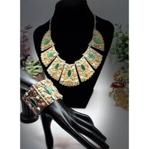 Gorgeous Vintage Silver Tribal With Semi Precious Stones Sterling Silver Set