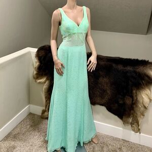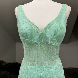 Gorgeous Vintage Style 100% Silk All Over Crystal Beaded Gown with Sexy Back