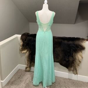 Elegant and charming retro style, high quality gown. All-over exquisite crystal beading pattern, all hand sewn. Stunning V-back and with delicate crystal beaded tassel and mermaid skirt. Sexy and charming for your events.