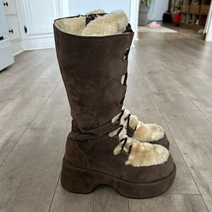 Gorgeous Vintage Suede Platform Furry Lace Up Winter Boots EUC size 9.5