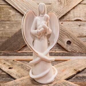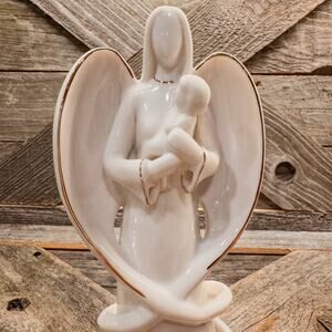 Gorgeous Vintage White and Gold Porcelain Angel-Mother-Grandmother Holding Baby