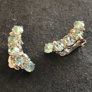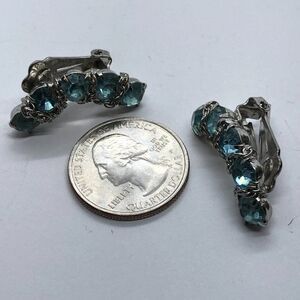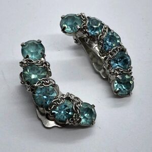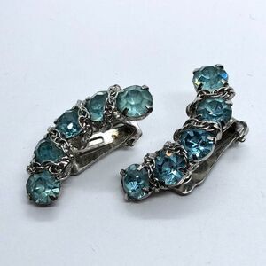 Gorgeous Vintage Prong Set Aqua Blue Rhinestone Clip On Chain Accent Earrings