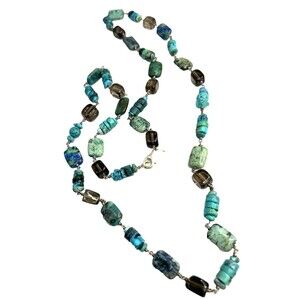 Gorgeous Vtg Silpada Necklace 30” Turquoise Smokey Quartz Sterling Silver 925