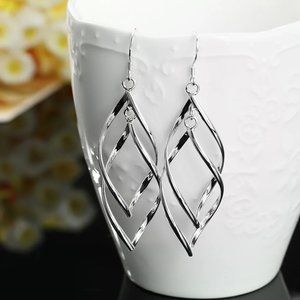 Gorgeous Wavy Drop Earrings Solid Sterling Silver " Hypoallergenic "
