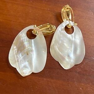 Gorgeous White Abalone Shell Earrings Gold Excellent