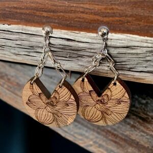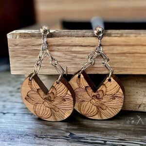 🌺 Gorgeous Wood Boho Earrings with Chain Detail