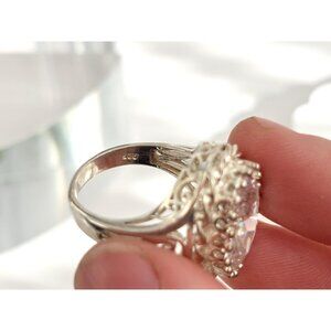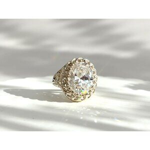 Gorgeous XL Sterling Silver Oval Cubic Zirconia Ornate Vintage Ring - sz 8.25