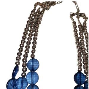 Excellent used condition, gorgeous navy blue and gunmetal gray multi-strand beaded necklace. Adjustable length clasp, mid-length, Navy beads are opaque and faceted for sparkle. From my smoke-free and pet-free home.