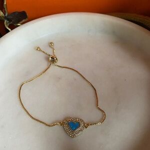 Gorgeous adjustable size blue Opal heart gold tone bracelet