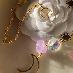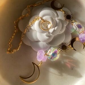 Gorgeous amethyst and Aurora Borealis style crystals gold tone Dreamcatcher
