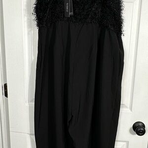 Gorgeous black Eloquii jumpsuit, wide leg, fun textured fringe at top, size 20