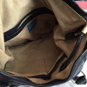 Thick high quality leather bag with gold hardware and multiple straps for ease of wearing. EUC this bag will last a lifetime.