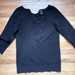Beautiful and sophisticated black top by White House Black Market. It has 3/4 sleeves and the back ties with a beautiful satin ribbon. Great to pair with jeans or a skirt. Loved this for the holidays or any special occasion.