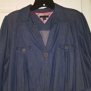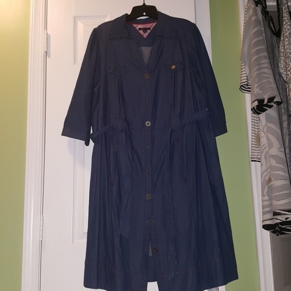 Gorgeous brand new denim button front dress new w/tags by Tommy Hilfiger in size 14. Dress has red stitching, 3/4 length sleeves with front pockets and belt