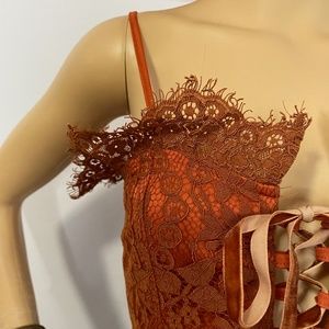 Gorgeous burnt orange adjustable spaghetti strap lace tied up bustier crop top!