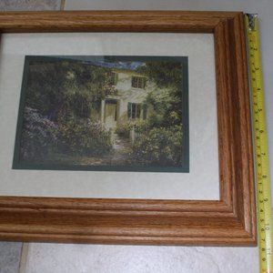 Gorgeous cottage print matted and framed, approximately 11"x13"