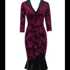 This is an elegant dress perfect for work or a special event. Hugs the body and its curves . material is velvet. Stretchy material can fit size four to six