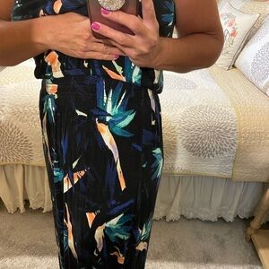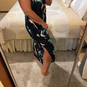 This beautiful, and stunning maxi dress has double straps on the shoulders, elastic waist, and lined top that appears to be two pieces, but is really one full maxi dress. Also has a slight side slit and is incredibly soft.