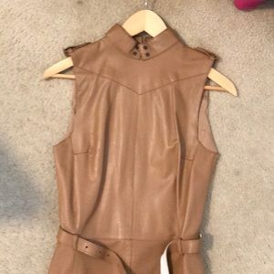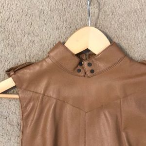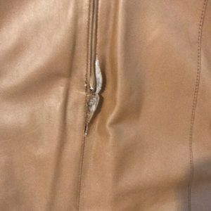 Gorgeous leather. Luca Luca dress. Tear in back near zipper. Stain on back of collar. Both pictures. Sexy and unique