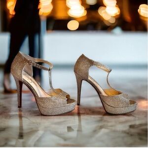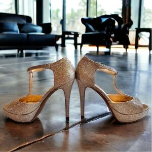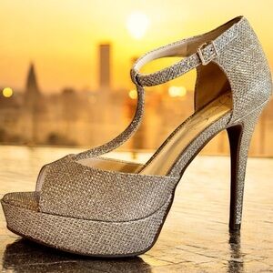 Gorgeous heels with Sparkling Mesh Texture. Stilettos Gorgeous Comfy Party Shoe. Great for holiday parties! Worn to a few last year. Want a change up for me means deal for you. Fantastic condition. Ask any questions in comments.